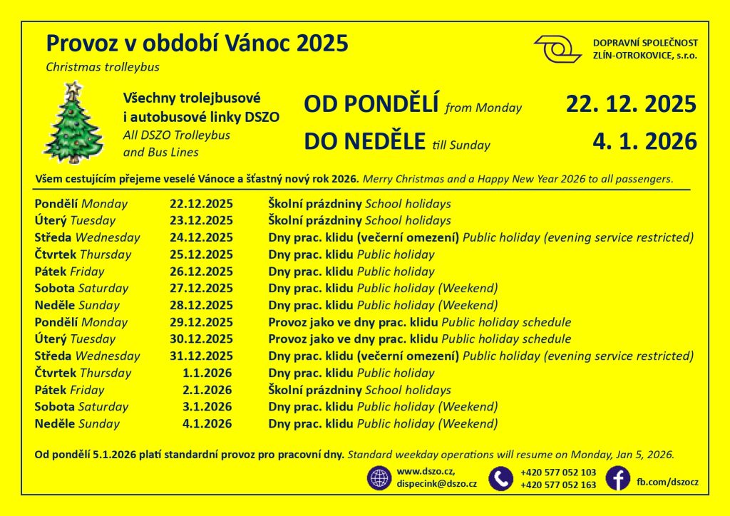 | čtvrtek 25.12. | 8.30 – 17.30 hod. přestávka 12.20 – 12.50, 16.15 – 16.30 hod. |
